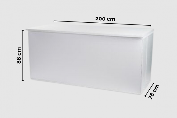Taula perfecta per a bufet, per a un showcooking o una barra, plegable i còmoda.