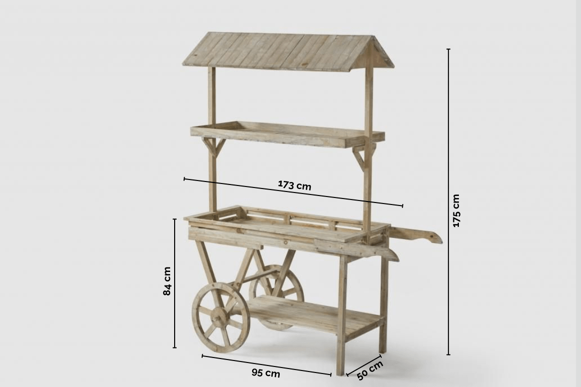 Carro de fusta d’estil vintage, ideal per a la decoració de noces i esdeveniments. 3 baldas