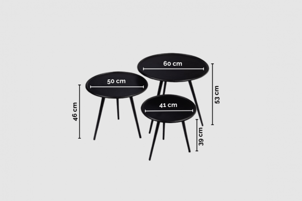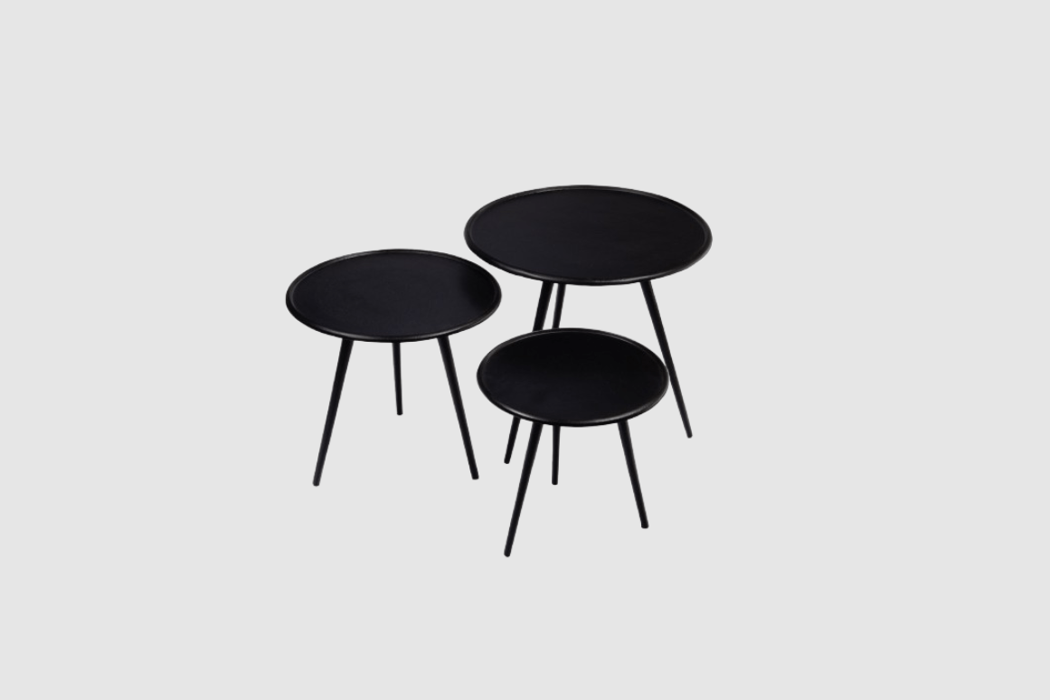El Set 3 Mesas Bajas Black és una opció elegant i funcional per a espais interiors i exteriors. El seu disseny contemporani en negre mat la converteix en una solució molt adequada per a terrasses, zones lounge i ambients chill out.