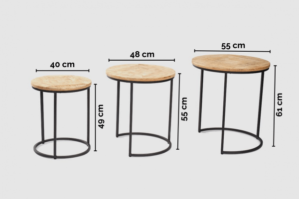 Superfície de fusta en acabat natural amb suport metàl·lic acabat negre mat.