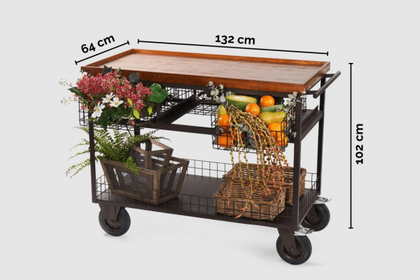 Decorative cart perfect to give color and personality to any space. It is perfect for displaying products, or as a decorative element.
