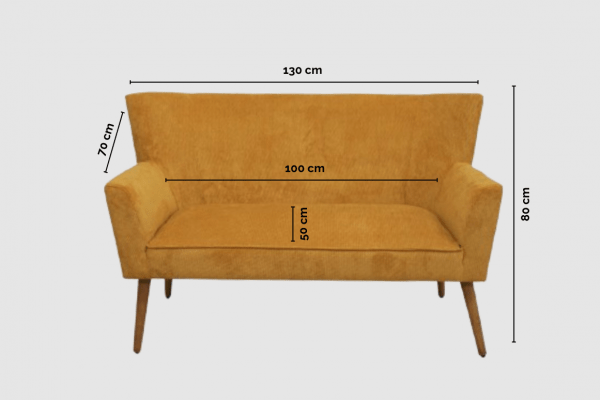 The Bethoveen two-seater sofa is an excellent choice for adding a touch of colour and comfort to any space. Available to rent in four colours: mustard, purple, pink and green.