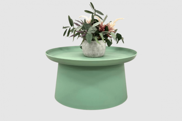 A table that resembles the shape of a mushroom, it is ideal for outdoor spaces and very combinable. Its resistant material makes it a safe bet