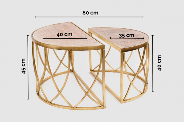 Set of golden tables with wood on top. Perfect for creating ambiance in a chill out or any other space.