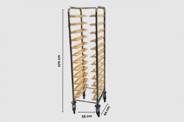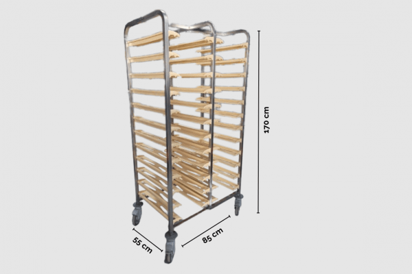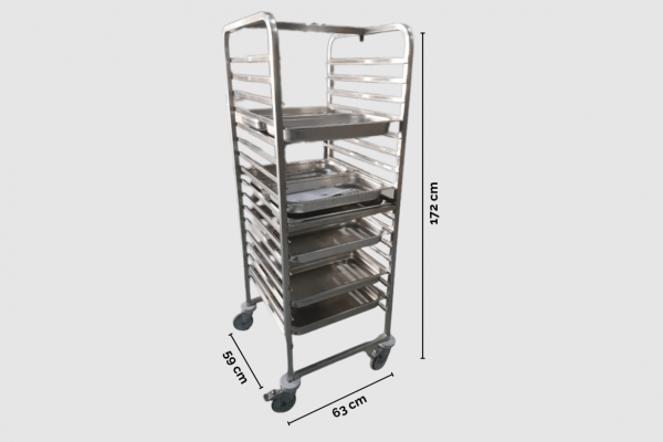 Especificaciones técnicas | -Doble inox: medida: se pueden colocar cubetas o rejillas. 63 cm x 59 cm x 172 cm 16 guías (máximo 32 cubetas en función de la altura). |