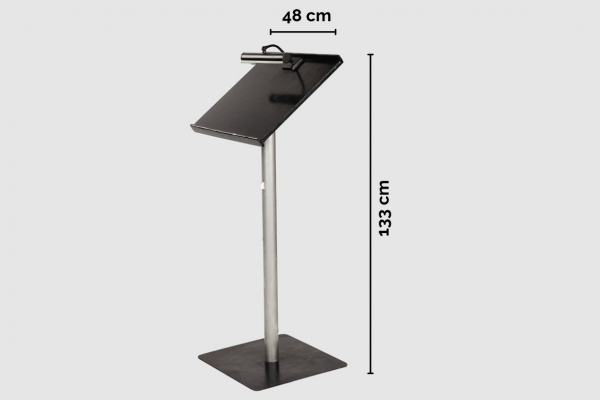 Atril de madera y acero, elegante y sofisticado, perfecto para conferencias.