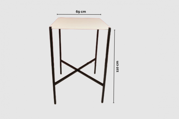 Mesas altas con estructura y tablero configurable en varios colores, dando un toque elegante y sofisticado a todo tipo de cóctel.
