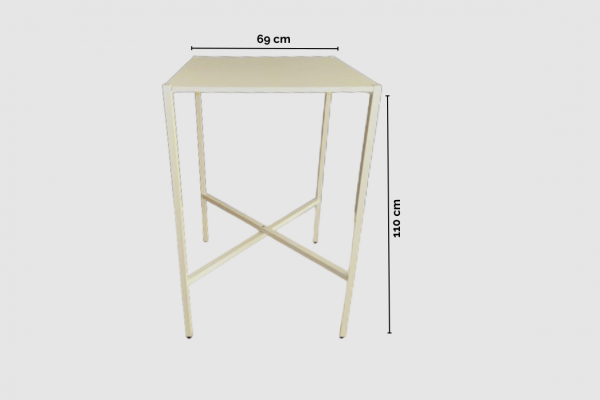 Mesas altas con estructura y tablero configurable en varios colores, dando un toque elegante y sofisticado a todo tipo de cóctel.
