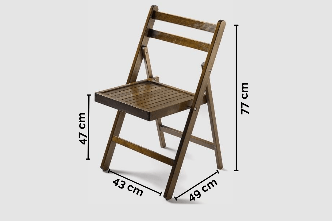 Silla plegable de madera nogal, elegante y práctica, ideal para eventos, bodas y exteriores. Fáciles de transportar y almacenar.