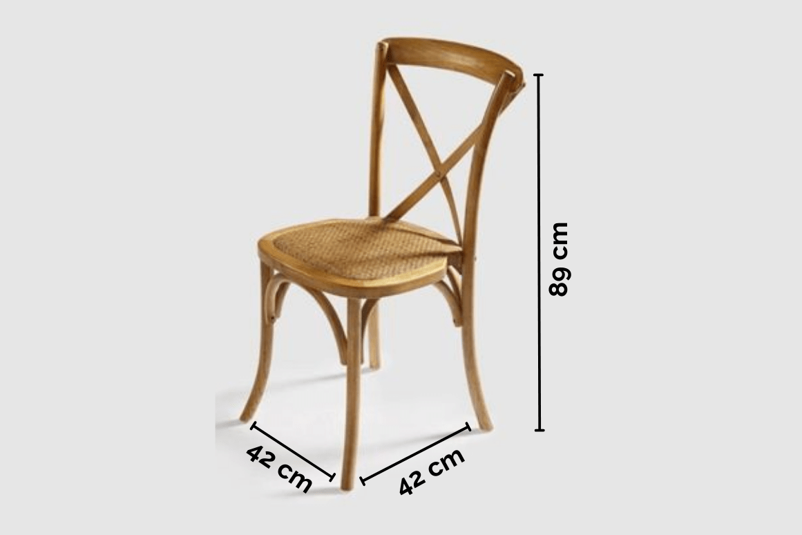Sillas de madera con cojín integrado del mismo color. Son ideales para eventos, bodas u otro tipo de celebraciones, dándole un toque vintage y rústico.