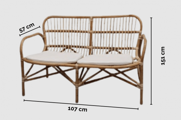 Sofá de bambú perfecto para terrazas y jardines, acabados artesanamente a mano.